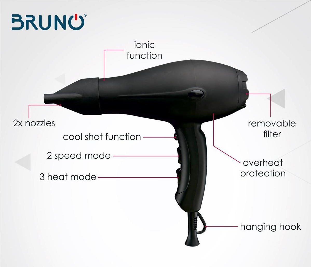 BRUNO Σεσουάρ μαλλιών BRN-0004, 2000W, με ιονιστή, 2x στόμια, AC motor